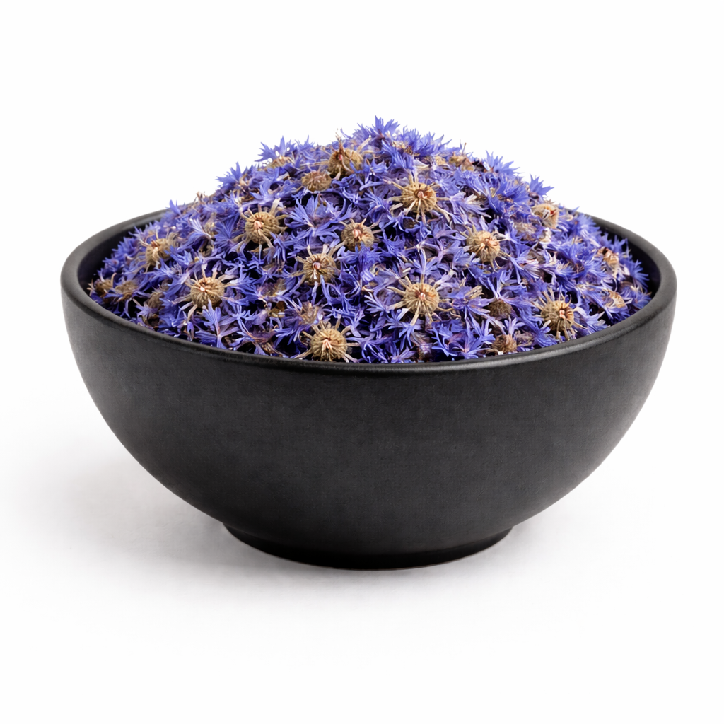 Cornflower Blue (Whole) consists of carefully dried, intact flower heads of Centaurea cyanus, prized for their striking cobalt-blue petals and delicate structure. These whole blossoms retain their natural star-shaped form and subtle earthy undertones, making them ideal for both functional and decorative botanical applications. Cornflowers are traditionally appreciated for their gentle soothing properties and are widely used in teas, skincare, and artisan formulations.